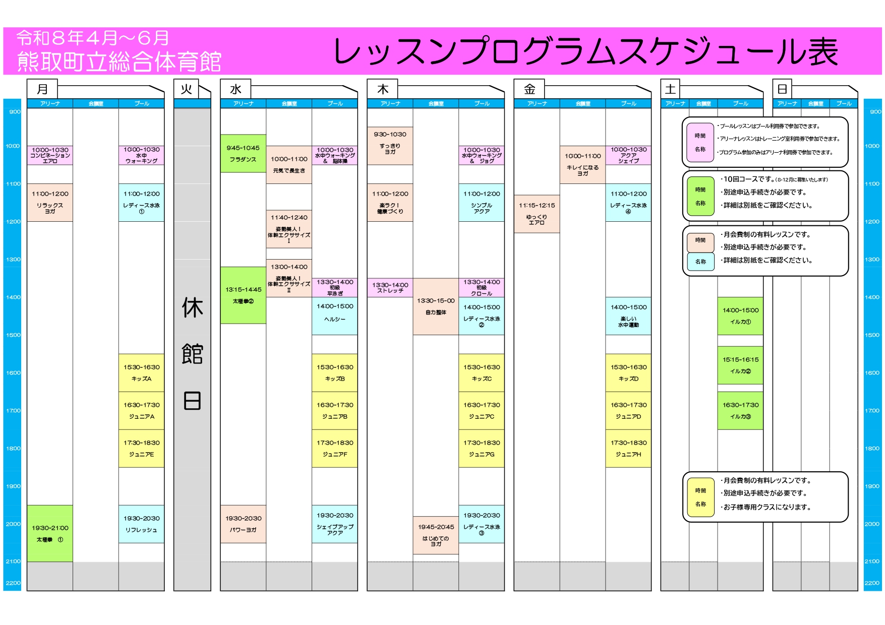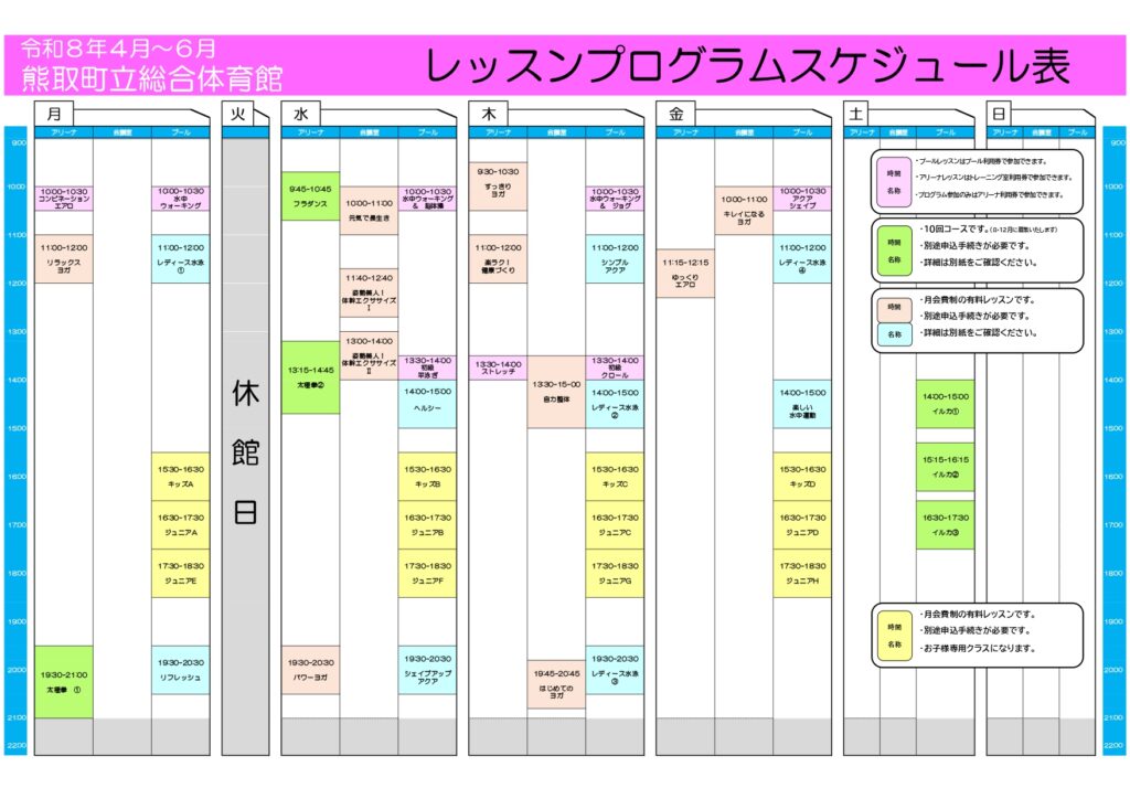 スポーツ教室は通年の開催教室です。10回コースの教室は年3クールで開講します。