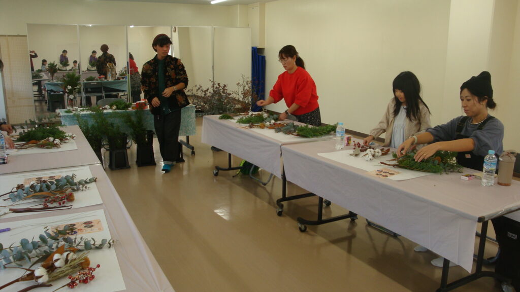 「季節のフラワーレッスン♪クリスマススワッグ作り」