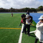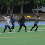 沖縄県フライングディスク協会様の丁寧な指導により、初めは上手に投げれなかった子も最後にはコントロール良く投げれるようになりました。