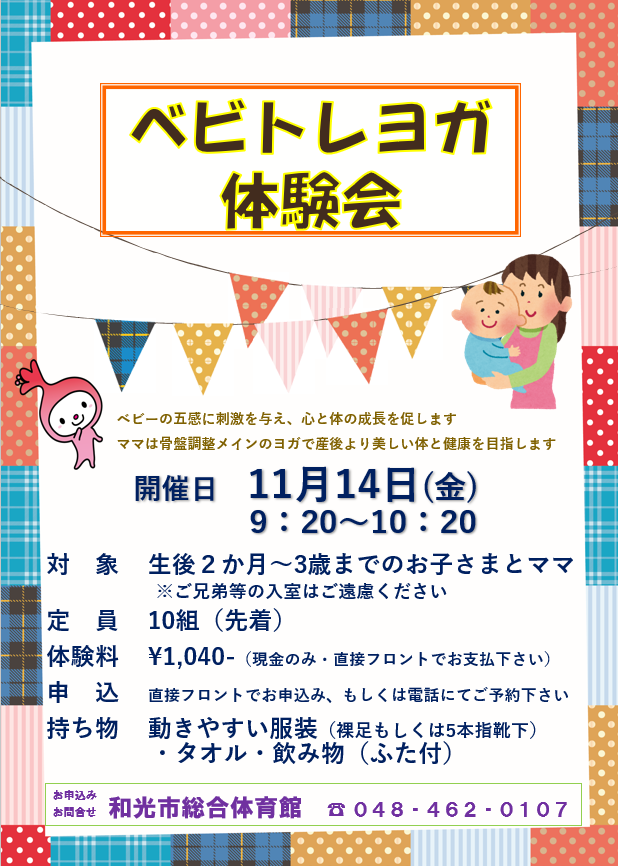 和光市総合体育館でベビトレヨガ教室の体験会を開催いたします。